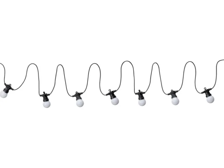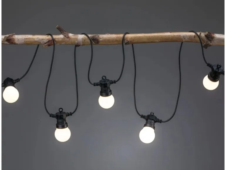 Die Lichterkette überzeugt durch eine schöne Lichtfarbe in 3.000 K, Warmweiß und einen Lichtstrom von 25 lm. Die Lichterkette hat eine Leistung von 1,5 W und eine erwartete mittlere Nennlebensdauer von 15.000 Stunden. Sie entspricht der Schutzklasse IP44 und ist somit vor dem Eindringen von festen Fremdkörpern über 1 mm und gegen Spritzwasser geschützt. Daher sollte die Lichterkette stets unter einer Überdachung aufgehängt oder bei Regen drinnen gelagert werden.