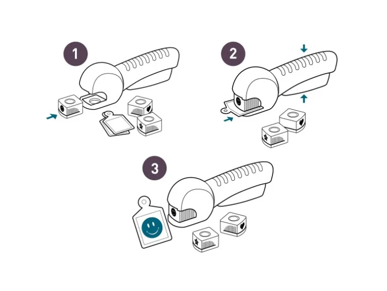 Set besteht aus Prägezange und 6 Motivstempeln