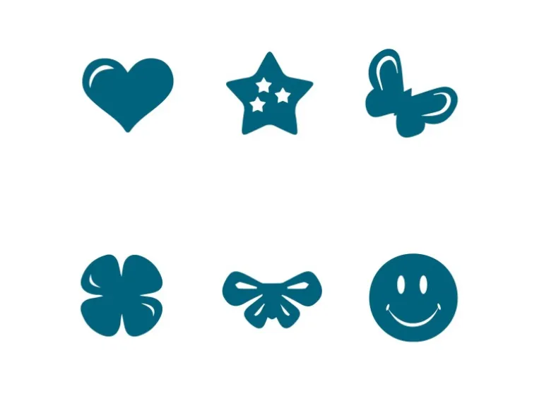 Motive: Stern, Schleife, Smiley, Herz, Kleeblatt und Schmetterling