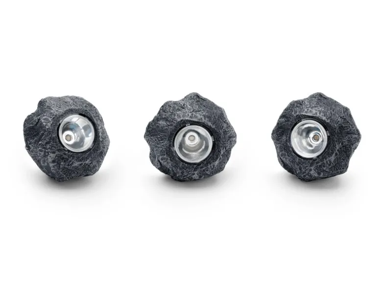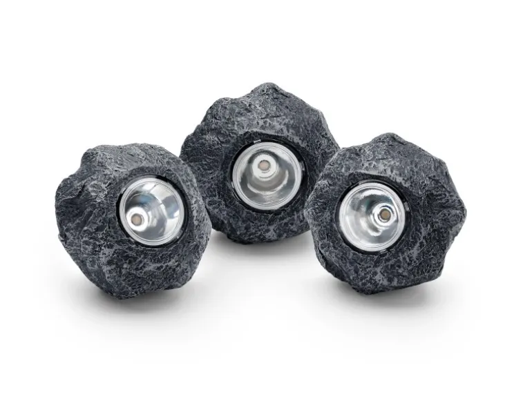 So lässt sich der gesamte Garten von der Terrasse über das Beet bis hin zum Teich in sanftes Licht tauchen. Dabei können die Leuchten dauerhaft unter Wasser eingesetzt werden (Schutzart IP68). Besonderes Highlight ist die Optik: Die warmweiß leuchtenden LEDs (3.000 Kelvin Farbtemperatur) sind eingegossen in ganzjährig wetterfestes Polyresin. Das verleiht ihnen eine zeitlos attraktive Schieferoptik, passend für die Integration in allen Gärten. Im Set enthalten sind ein Trafo sowie ein 9 m langes Kabel.