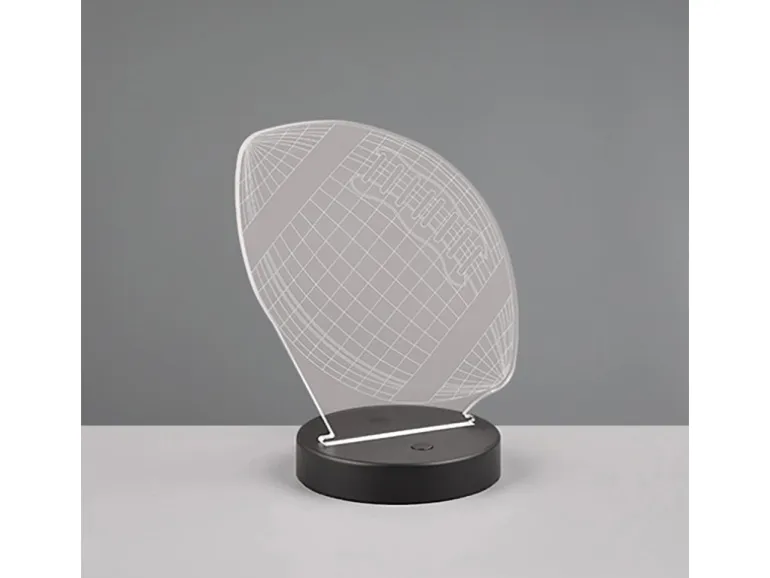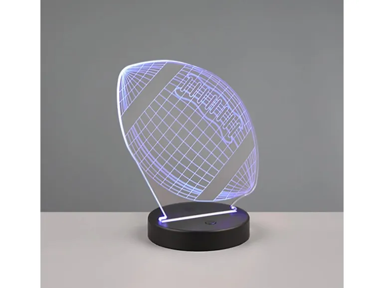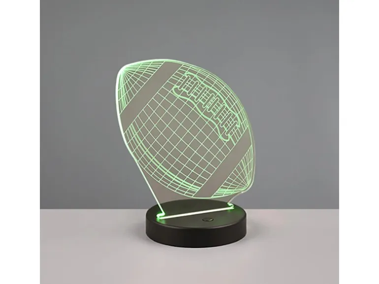 Die Leuchte sollte prominent im Interieur platziert werden, da sie sowohl eingeschaltet als auch ausgeschaltet ein Highlight darstellt. Mit dem herkömmlichen Schalter am Leuchtfuß kann die Farbe der Beleuchtung dank eines RGBW-Farbwechslers eingestellt werden. Das ermöglicht die Anpassung der Beleuchtung je nach Stimmung oder Veranstaltung, ideal für einen Sportabend oder andere besondere Anlässe.