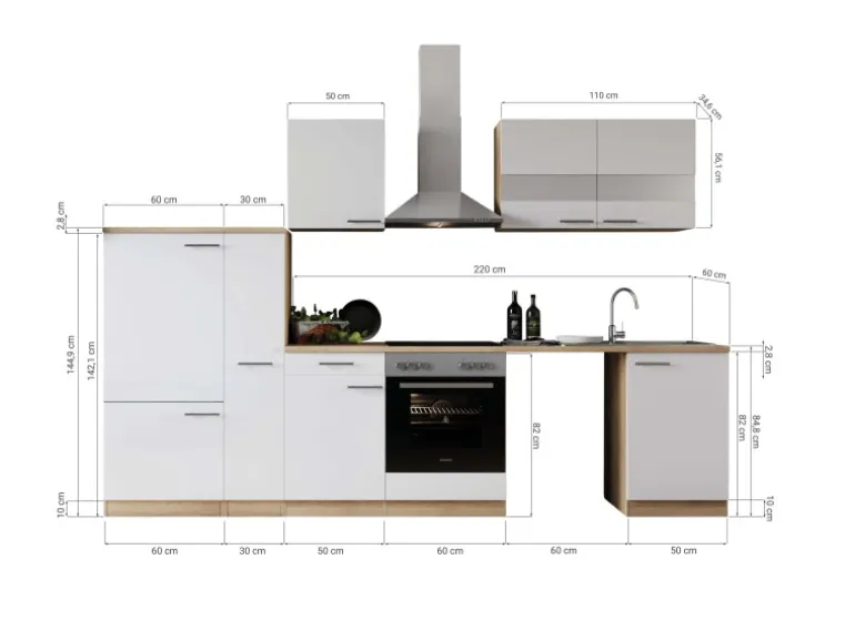 1 Arbeitsplatte ohne Ausschnitte 220 cm, 28 mm Stärke