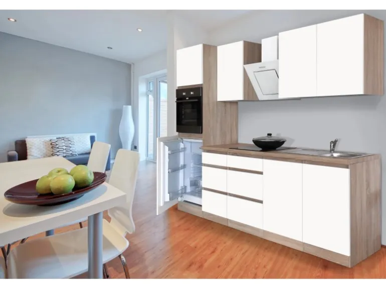 Die Respekta Premium Küchenzeile GLRP270HESWM besteht aus (HxBxT):