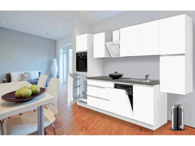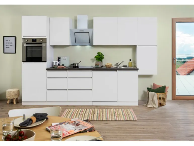 Die Respekta Premium Küchenzeile GLRP330HWWM besteht aus (HxBxT):