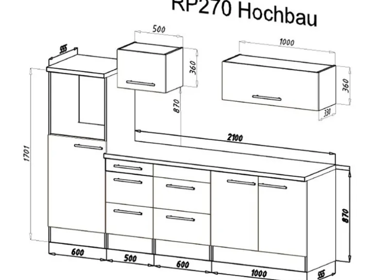 Die Respekta Premium Küchenzeile 270 cm besteht aus: