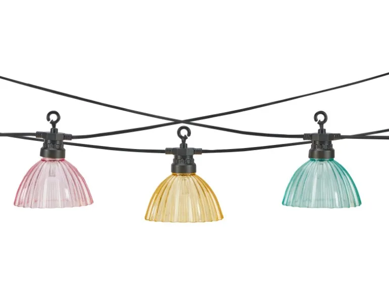Solar-LED-Lichterkette mit 8 farbenfrohen Kunststoff-Lampen im Regenschirm-Design, Gesamtlänge ca. 5,5 m