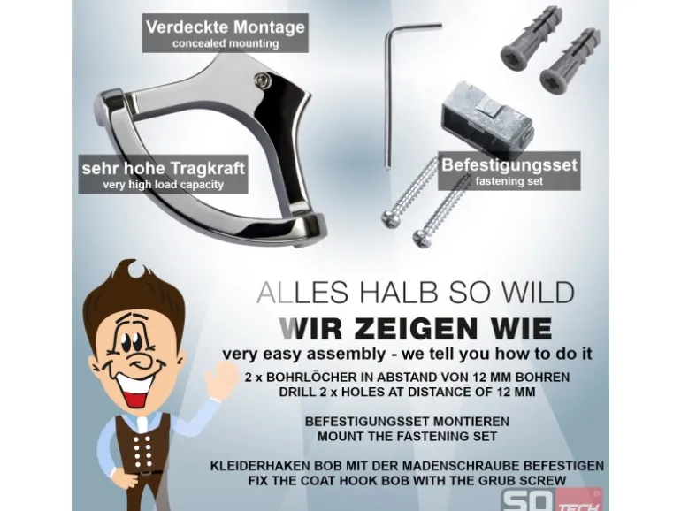 Lieferumfang – 1 Stück Kleiderhaken inkl. Befestigungsset