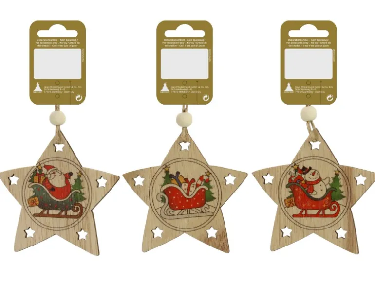 Dekorativer Stern-Hänger mit mehrfarbigem Weihnachtsmotiv in 3 verschiedenen Designs