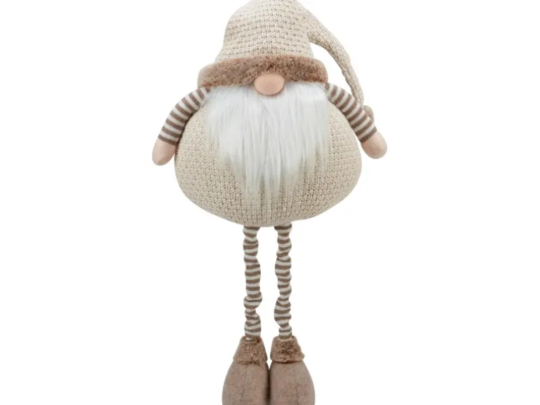 Dekorativer Stoff-Wichtel in winterlicher Kleidung, mit weißem Bart und ausziehbaren Pop-Up-Beinen