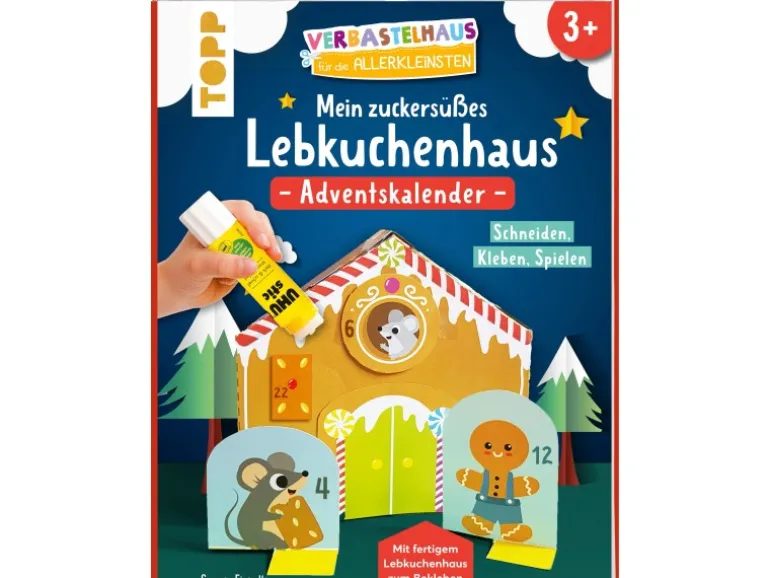 Schneiden – Kleben – Spielen. Adventskalender mit fertigem Lebkuchenhaus zum Bekleben