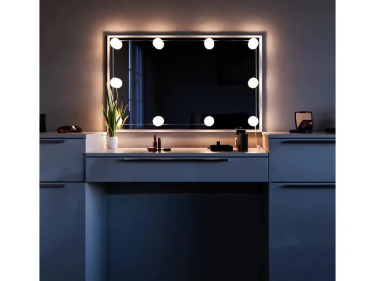 LIEFERUMFANG: Schminktisch, LED-Lichterkette, Montageanleitung, Montagematerial.