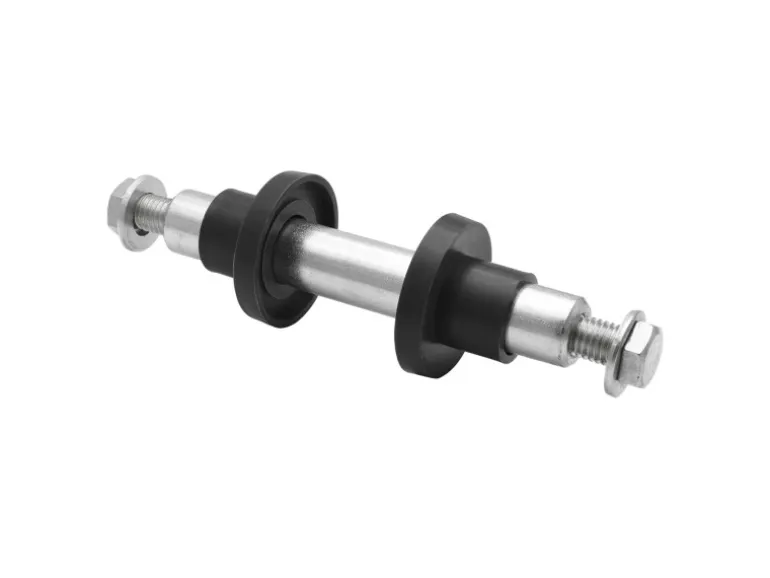 Komplett mit Achse, Schraubgewinde, Mutter, Unterlegscheibe und zwei Distanzbuchsen