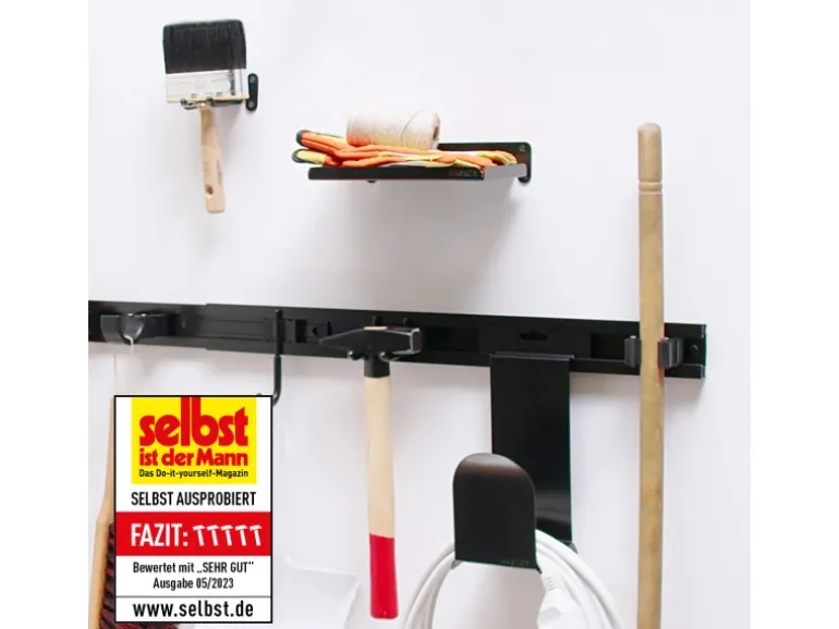 Die Gerätehalter sorgen für Ordnung in Haushalt, Büro, Werkstatt und Garten: Reinigungsgeräte, Werkzeug und Gartengeräte können daran platzsparend und übersichtlich aufgehängt werden. Das Gewirr auf dem Boden verschwindet, der Boden lässt sich hindernisfrei reinigen und Verletzungen z.B. durch das Treten auf den Rechen werden vermieden.