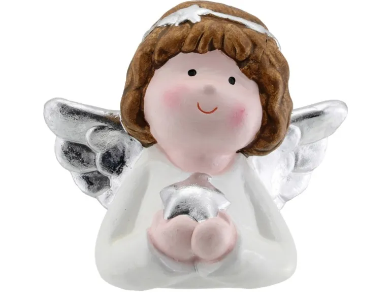 Weiß-Silberner Engel mit Stern aus Keramik
