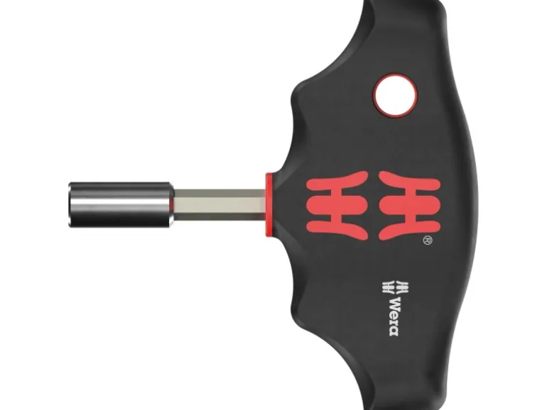 Der Bithalter 9548 mit Quergriff ist für alle 6 mm (1/4″)-Bits geeignet. Mit den drei enthaltenen, 89 mm langen Bits 840/4 Z für Innensechskantschrauben (das Hex-Plus-Profil verhindert das Runddrehen der Schraubenköpfe) wird der Griff zum Schraubendreher für die Übertragung besonders hoher Kraft.